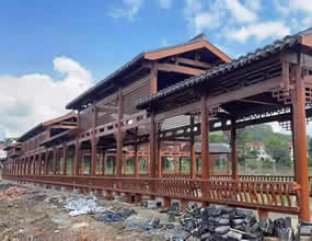 湖北黃岡小青瓦防腐木古建長廊 這個項目是湖北黃崗市的一個村里,定制的是一套古建小青瓦防腐木長廊,尺寸是長度11米,寬度為2.8米,總面積為30個平方米左右。陳總在網上找到我們